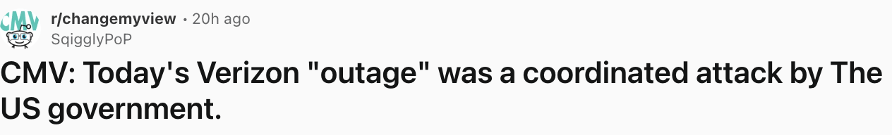 The good folks over on Reddit think the outage was a coordinated attack by the U.S. government to test martial law ahead of the midterms, clearly.