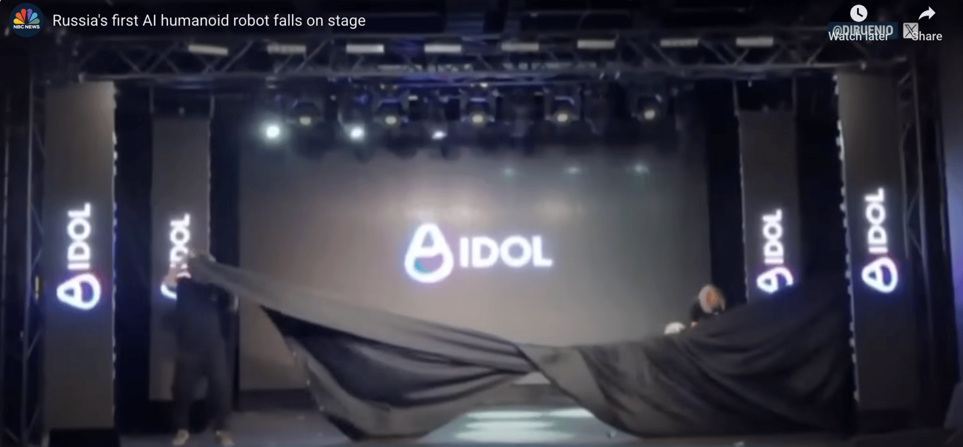 Post fall™, the robot, named AIDOL, wiggled on the ground as the team attempted to pick him up (he’s heavy!), while backstage staff fumbled the cover-up with a twisted sheet that made it obvious someone is getting executed fired.